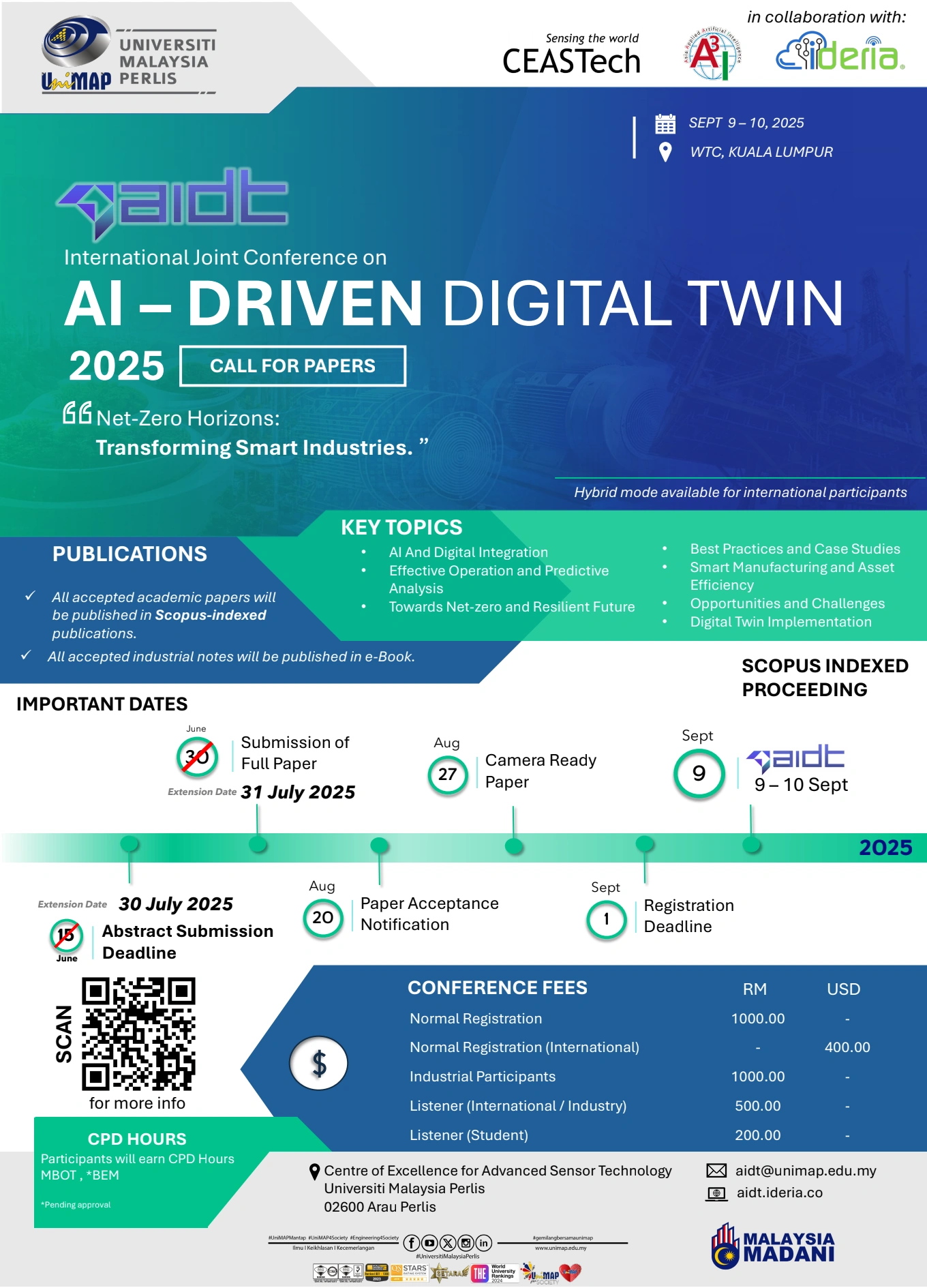 AIDT 2025 is set to be a catalyst for innovation, bringing together industry leaders, key players, academic experts, and policymakers to drive advancements in AI-driven digital twins across smart industries. This landmark event will serve as a collaborative platform where industry and academia converge, fostering cutting-edge research, real-world applications, and breakthrough technological developments. The conference will highlight revolutionary applications of AI-enhanced digital twins, from optimizing industrial operations and advancing healthcare technology to enabling sustainable energy solutions. By bridging the gap between academic research and industry needs, AIDT 2025 aims to accelerate technology adoption, drive policy discussions, and shape the future of digital transformation. Through high-impact collaborations, knowledge-sharing sessions, and strategic partnerships, participants will gain deep insights into emerging trends, innovative methodologies, and best practices. This event aspires to be the cornerstone of a new era in intelligent, efficient, and sustainable industrial practices, offering attendees the opportunity to influence industry standards, expand their professional networks, and position themselves at the forefront of the AI-driven digital revolution.